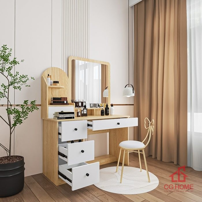 Bàn trang điểm gỗ MDF phủ melamine là dòng sản phẩm nội thất phòng ngủ được ưa chuộng bởi nhiều ưu điểm nổi bật, đáp ứng nhu cầu sử dụng đa dạng của phái đẹp