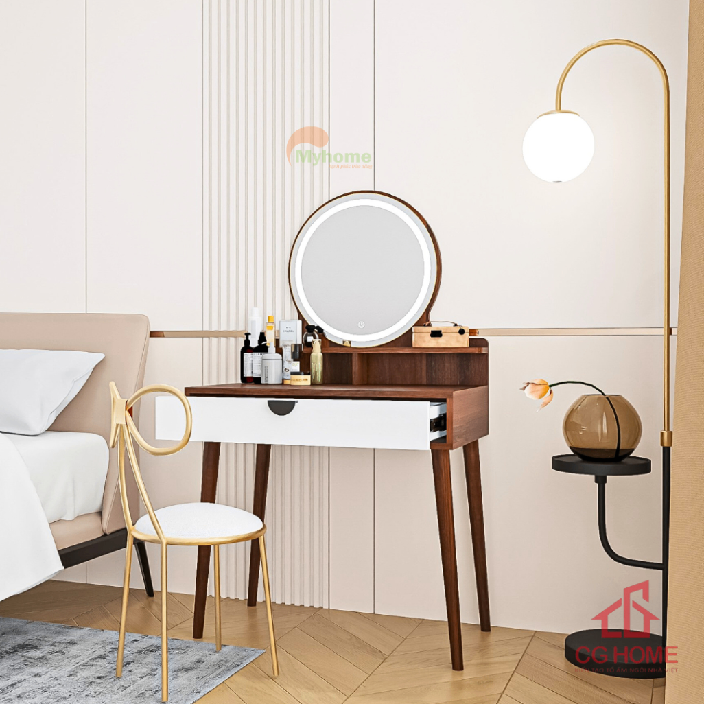 TRANG CHỦ / SẢN PHẨM / NỘI THẤT / BÀN TRANG ĐIỂM / Bàn Trang Điểm Gương Tròn Hiện Đại
