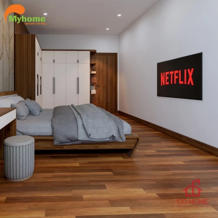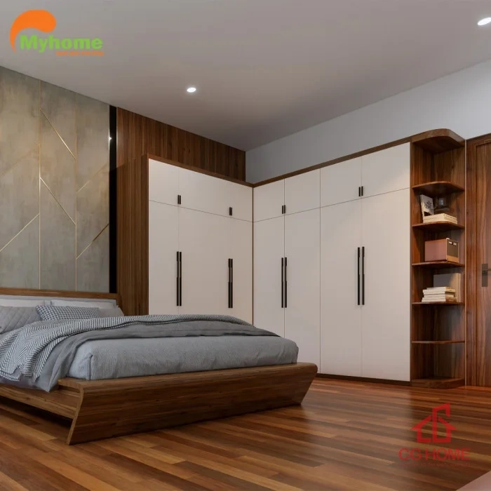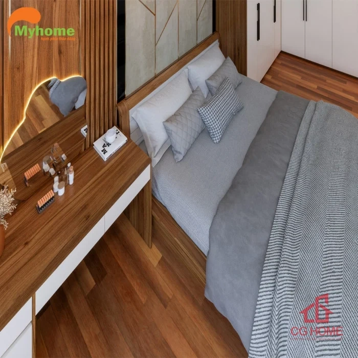 Phòng ngủ được ốp tường vân gỗ sang trọng