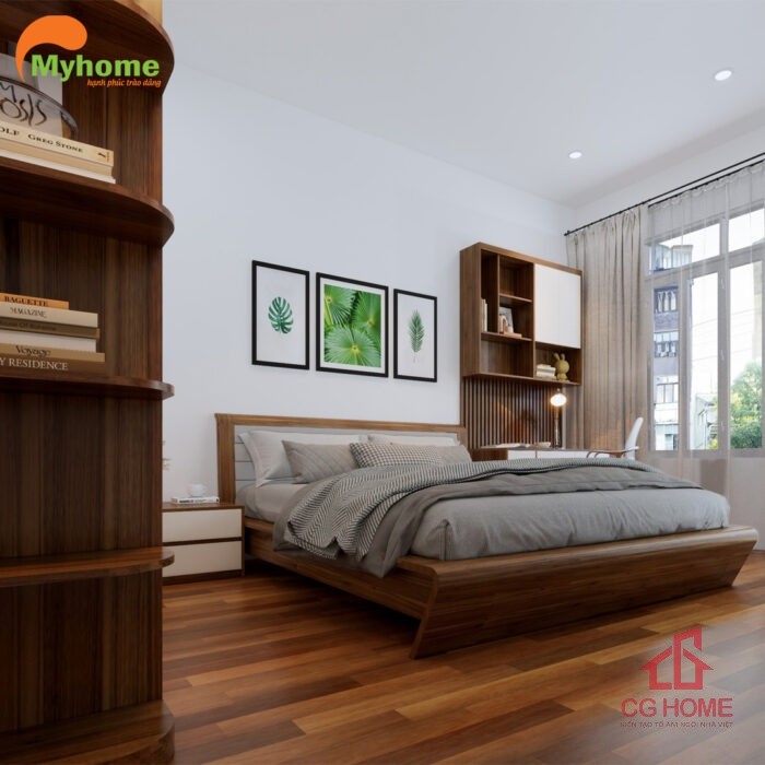 Giường và bàn học được bố trí liền kề. Giúp thuận tiện trong việc học tập và nghỉ ngơi.