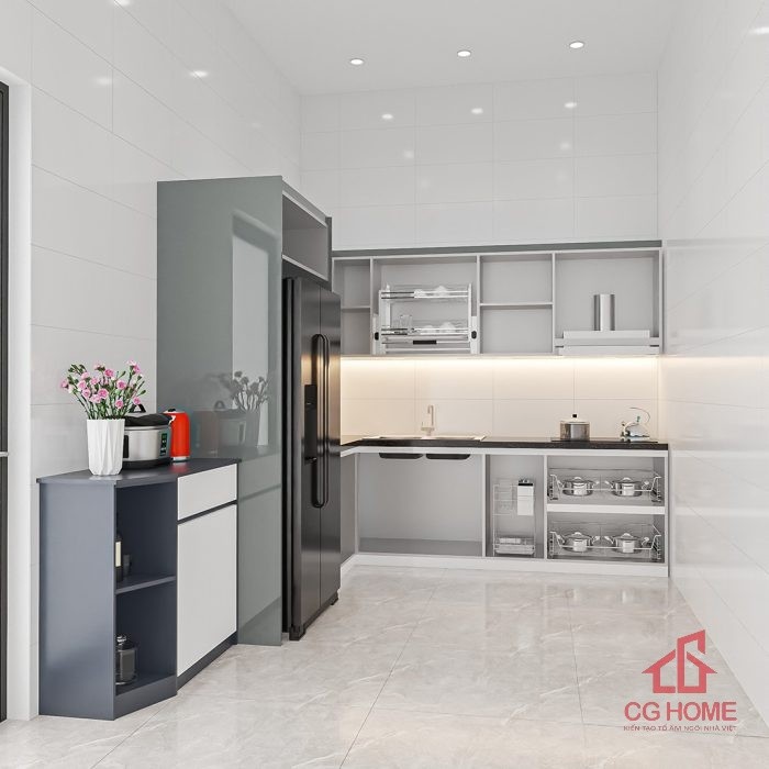 - Tối ưu không gian: Thiết kế chữ L tận dụng góc bếp, phù hợp với mọi căn hộ hoặc nhà phố.