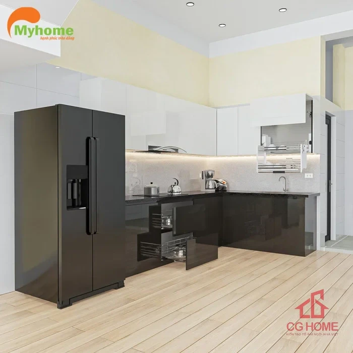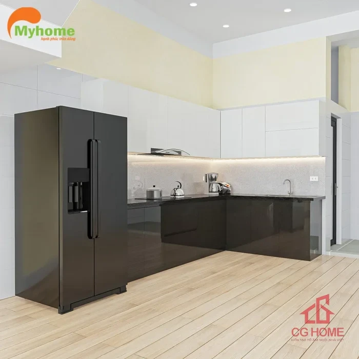 - Tối ưu không gian: Thiết kế chữ L tận dụng góc bếp, phù hợp với mọi căn hộ hoặc nhà phố.