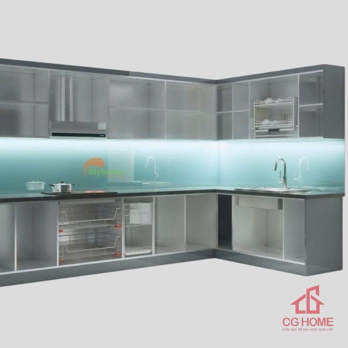 Hãy biến không gian bếp của bạn thành nơi truyền cảm hứng với tủ bếp inox cánh kính chữ L từ Nội Thất CGHome!