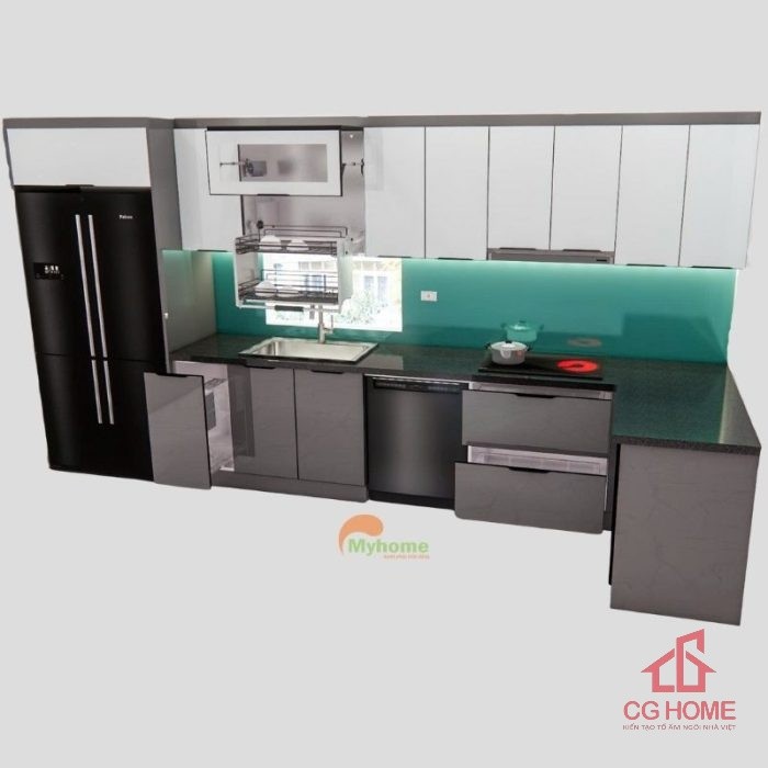 Tối ưu không gian: Thiết kế chữ L tận dụng góc bếp, phù hợp với mọi căn hộ hoặc nhà phố.