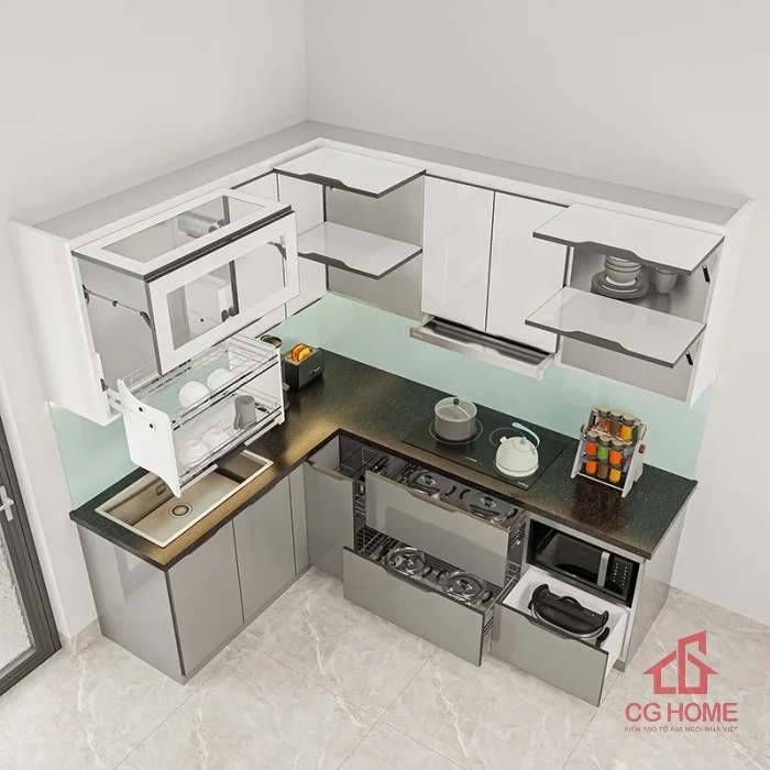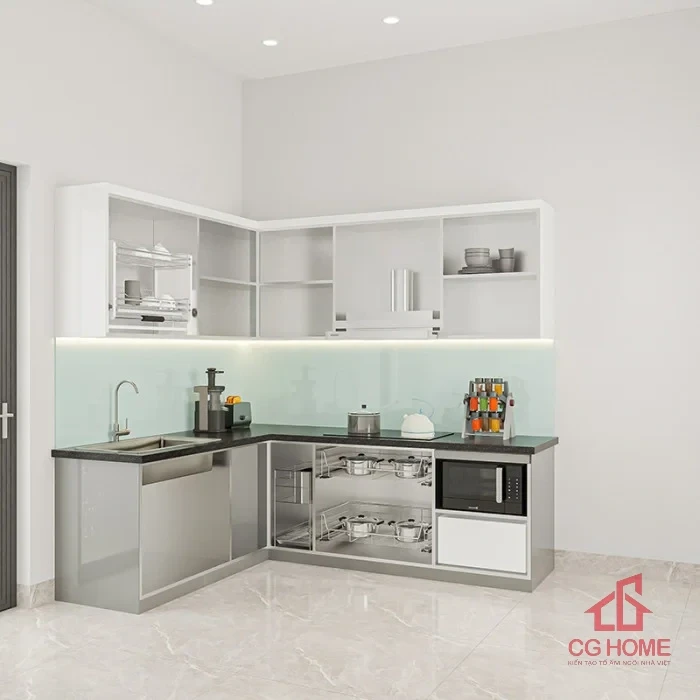 Giá Tủ bếp inox cánh kính chữ L2.3*1.8m trên website chỉ mang tính tham khảo. Mỗi dự án có kích thước, phụ kiện, và ngân sách riêng biệt. Nội Thất CGHome cung cấp báo giá chi tiết sau khảo sát miễn phí.