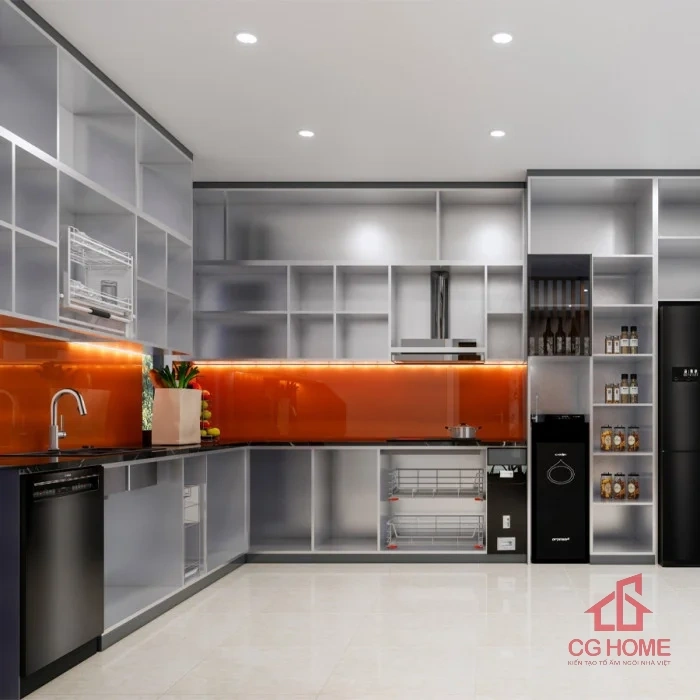 Nội Thất CGHome thi công Tủ bếp inox cánh kính chữ L4.5*3.3m tại Hưng Yên, Hà Nội, Hà Nam. Phục vụ Thái Bình, Hải Dương, Bắc Ninh với thợ tay nghề cao. Dự án tiêu biểu: Tủ bếp chữ L 4.5×3.3m tại Yên Mỹ, Hưng Yên, hoàn thiện 9 ngày.