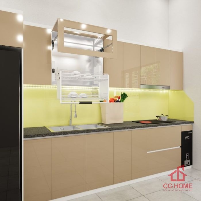 TRANG CHỦ / SẢN PHẨM / TỦ BẾP / TỦ BẾP INOX CÁNH ACRYLIC / Tủ bếp inox cánh acrylic 3.9m chữ I