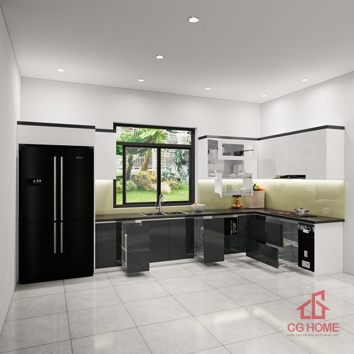 Căn bếp rộng rãi, đầy đủ tiện nghi với ánh sáng tự nhiên