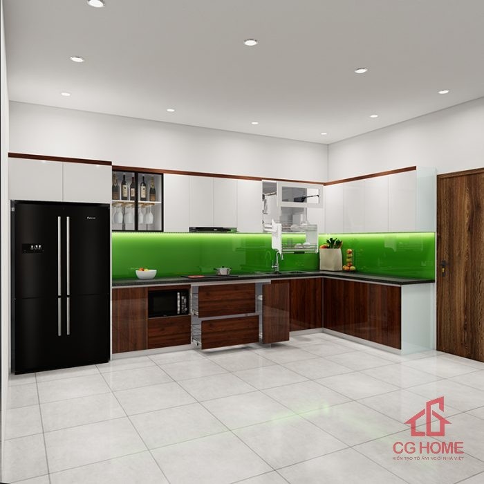 Tủ bếp được thiết kế với ngăn trưng bày rượu