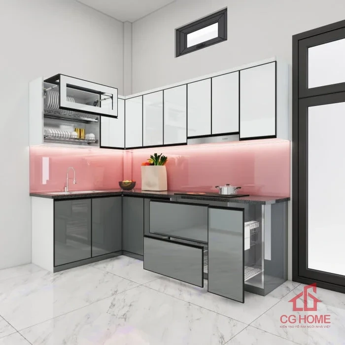 Khung nhôm liên kết kính tủ bếp